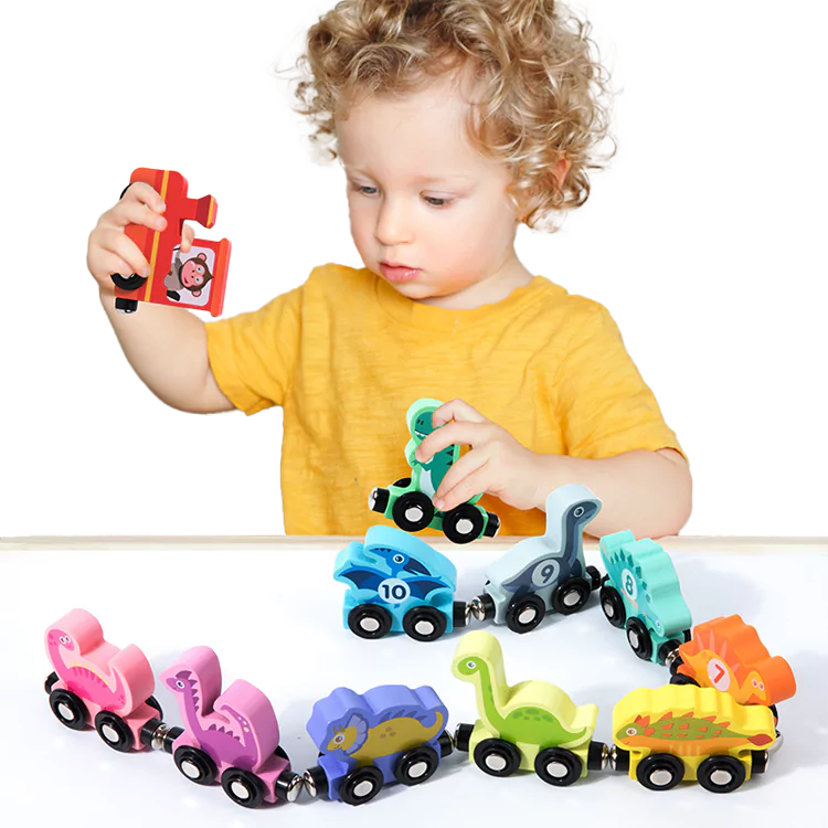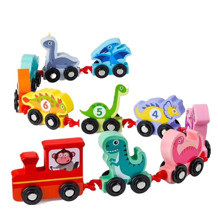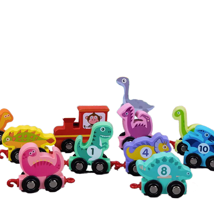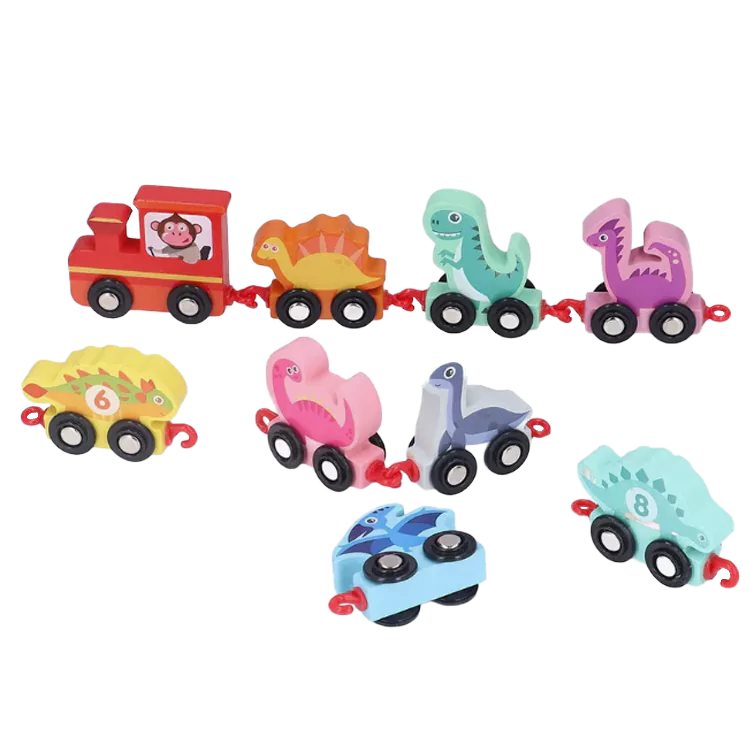 🔹 1 lokomotiva + 10 vagončića u obliku dinosaurusa